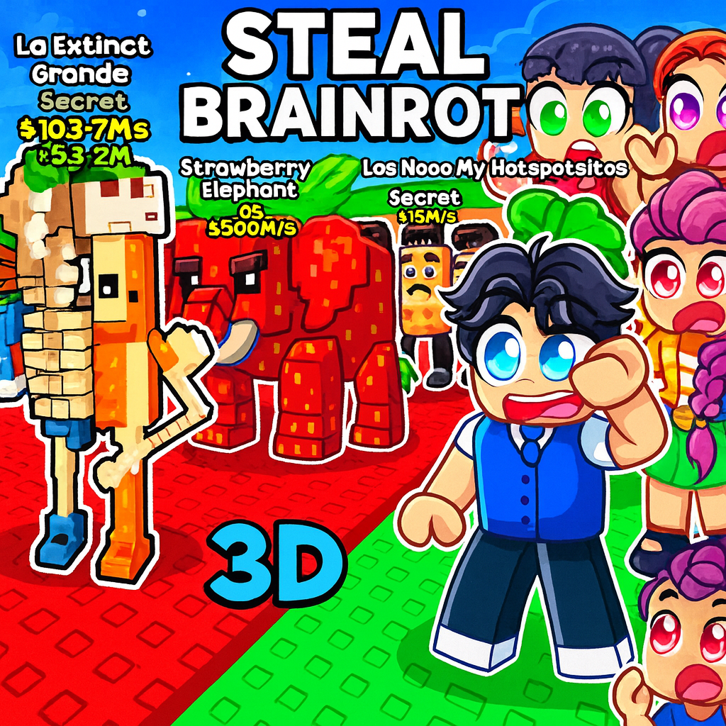 Steal Brainrot 3D reveals a tactical world full of strange rhythms with the appeal of Italian meme creatures. Ballerina Cappuccino, Tralalelo Tralala, and many other quirky mascots form a rich system.